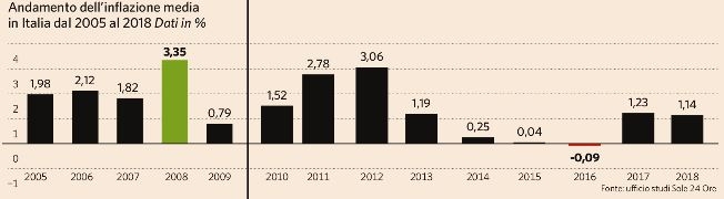 In Italia l’aumento dei prezzi medio, quindi l'inflazione, negli ultimi 10 anni è risultato pari all’1,49% (fonte ISTAT, periodo 2006-2016 ).