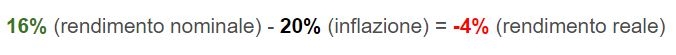 Il che spiega perfettamente le nostalgiche affermazioni di molti italiani, i quali ricordano con inossidabile fierezza i “bei tempi in cui il BOT rendeva il 16%”, dimenticando un’inflazione vicina o talvolta addirittura superiore al 20%. Ovvero: