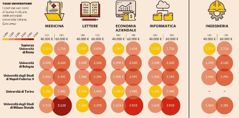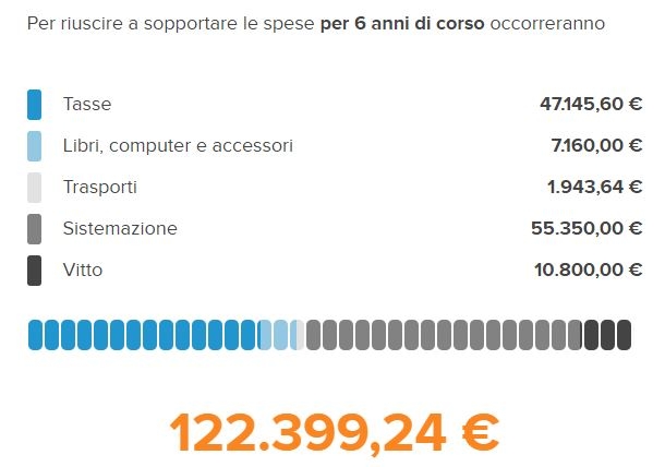 Il grosso degli studenti universitari in Italia è fuori sede e, secondo i dati federconsumatori sui costi degli atenei italiani, spendono in media 9.000 euro l’anno . Vale a dire 27.000 per una Laurea Triennale, e fino 45.000 se si prosegue anche con il biennio Magistrale. Ma i dati cambiano in base alla città d'alloggio e a quale Ateneo ci si iscrive (statale o privato).